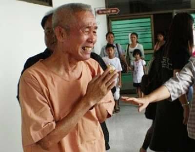 ….เผอิญดิชั้นได้มีโอกาสกลับไทย มีคนแนะนำว่า ก็ให้เอาเงินไปมอบให้อากงเองเลย ดิชั้นก็ไปเรือนจำ ไปพบป้าอุ๊ที่เป็นภริยาอากง เมื่อเจออากงที่ยืนอยู่ในคุก เรายืนคุยกันผ่านลูกกรง ป้าอุ๊แนะนำดิชั้นว่า “คนนี้คือคนที่เค้าช่วยเรื่องลื้อและเอาเงินมามอบให้” อากงร้องไห้ทันที ขณะที่มือจับลูกกรงอยู่ แล้วอากงทรุดตัวลงไปเพื่อกราบดิชั้น ดิชั้นเอามือลอดผ่านลูกกรง ดึงตัวเค้าขึ้นมา เค้าบอกดิชั้นว่า เค้าไม่ได้ทำ เค้าถูกกลั่นแกล้ง ร้องไห้น้ำตาอาบสองแก้ม เราก็ร้องไห้ตามไปด้วย อากงยังฝากให้ช่วยดูแลลูกหลานแกด้วยหากเป็นอะไรไป ในที่สุด แกก็เสียชีวิตในคุกในปีถัดมา