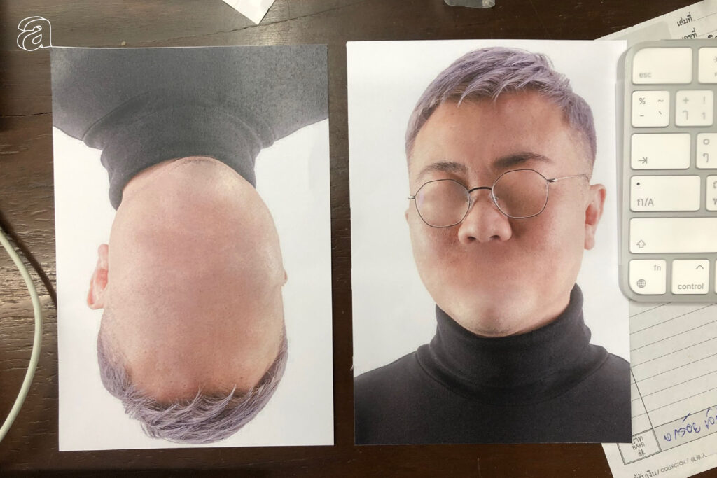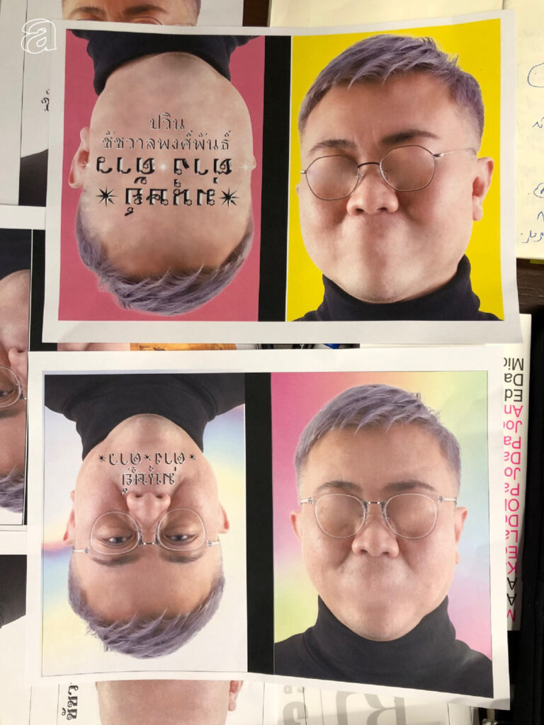 วิธีคิดแต่ละภาพจริงๆ ก็คือการเอาภาพตัวอาจารย์ปวินที่โพสต์ท่าต่างกรรมต่างวาระจับมาคอลลาจลงบนภาพอื่นที่ไม่ใช่สถานการณ์ปกติ ไม่ว่าจะเป็นมีม ภาพกากๆ มังงะของนาโอกิ อุราซาวะ หรือเคซูเกะ อิตางากิ สไตล์แมกกาซีนยุค 2000s อย่าง THE FACE งานออกแบบของ M/M Paris และหน้าปกโมเดิร์นด็อกชุดแรก