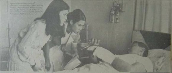 “ทูลกระหม่อมทั้งสองพระองค์เสด็จเยี่ยมตำรวจที่ได้รับบาดเจ็บจากการกวาดล้างที่ธรรมศาสตร์ ที่โรงพยาบาลตำรวจ เมื่อ 15.00 น. วันที่ 7 ตุลาคม 2519 และพระราชทานเงินของมูลนิธิสายใจไทยให้ตำรวจที่ได้รับบาดเจ็บทุกคน”นสพ.เสียงปวงชน ฉบับวันที่ 9 ตุลาคม 2519ปล. แม้นักศึกษาจะเสียชีวิตโดยการฆ่าจากพวกฝ่ายขวาอย่างโหดเหี้ยม หลาย 100 คน บาดเจ็บอีกหลาย 100 คน ก็ไม่มีการได้รับเยี่ยม หรือของขวัญจาก ราชวงศ์ แต่อย่างใด